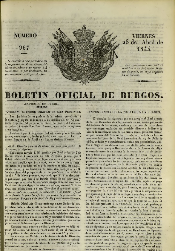 Boletín Oficial de Burgos de 26 de abril de 1844.